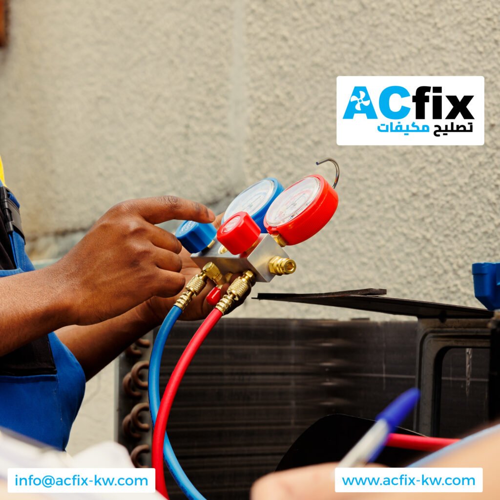 إذا كان السبب نقص الفريون، فيجب تحديد التسريب وإصلاحه أولًا ثم إعادة الشحن بالشكل الصحيح. إعادة تعبئة الغاز دون إصلاح السبب ليست حلًا دائمًا.